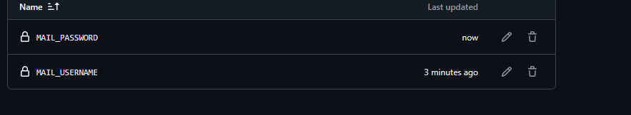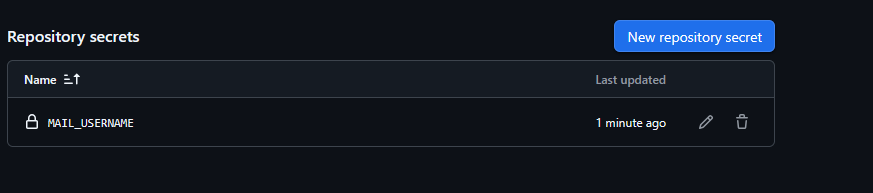 6. Lisasin repositooriumi Secrets alla vajalikud andmed.